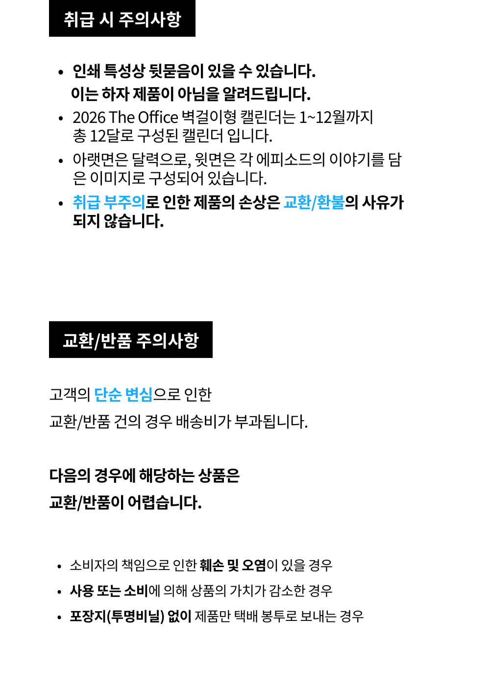 3. 판매자 과실로 인한 사유는 무료 교환 및 반품이 가능합니다.