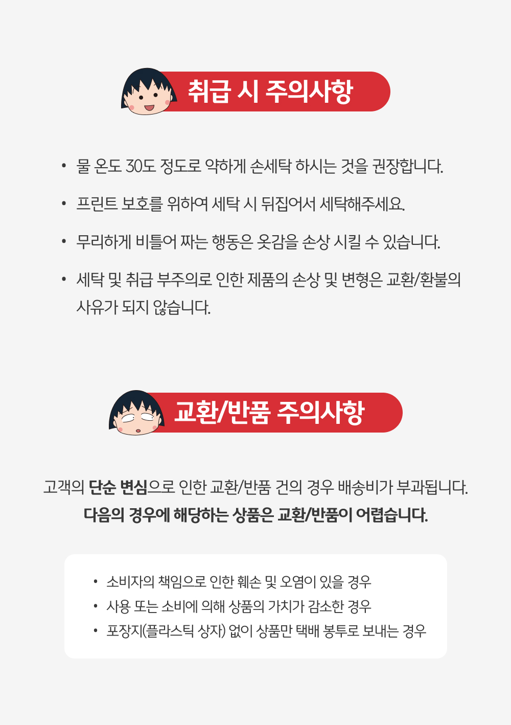 3. 판매자 과실로 인한 사유는 무료 교환 및 반품이 가능합니다.