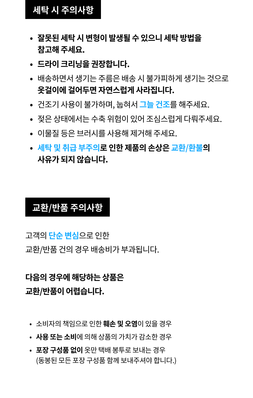 3. 판매자 과실로 인한 사유는 무료 교환 및 반품이 가능합니다.