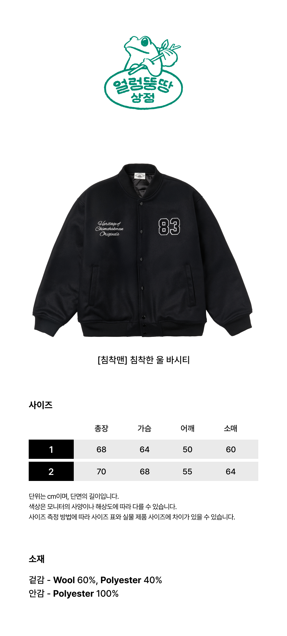 이번 시즌, 얼뚱상의 바시티 자켓과 함께 따뜻하고 멋진 겨울을 준비해보세요.