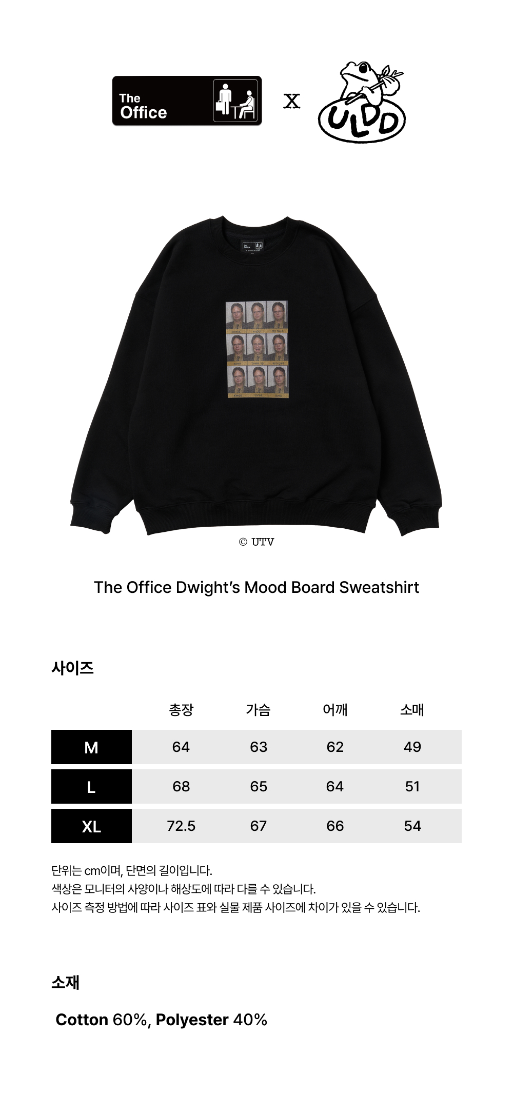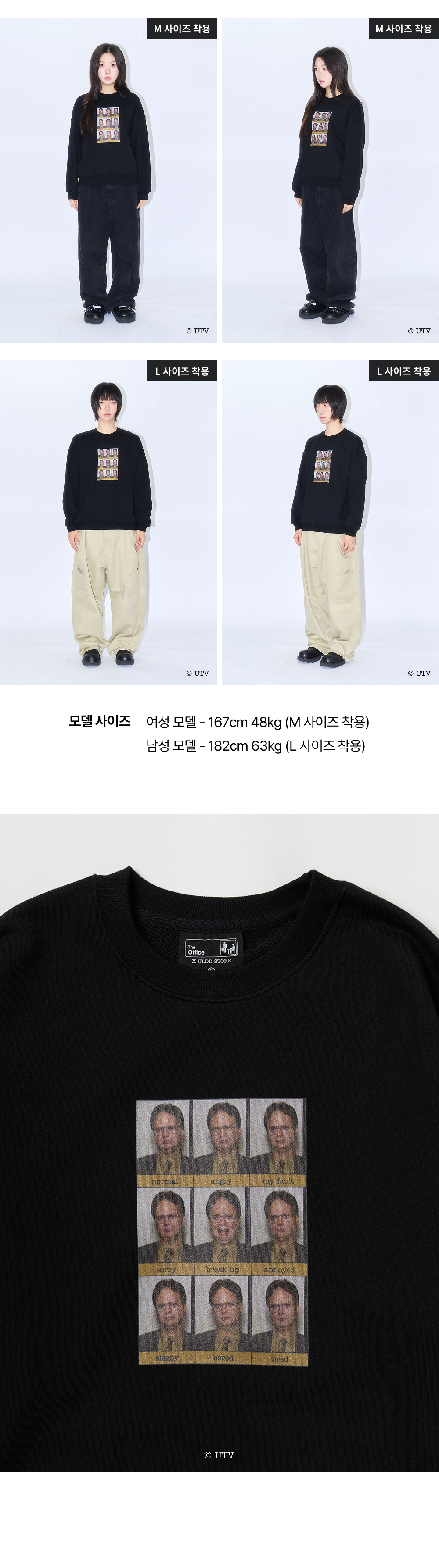 Dwight의 재치있는 표정이 담긴 무드보드 맨투맨입니다.