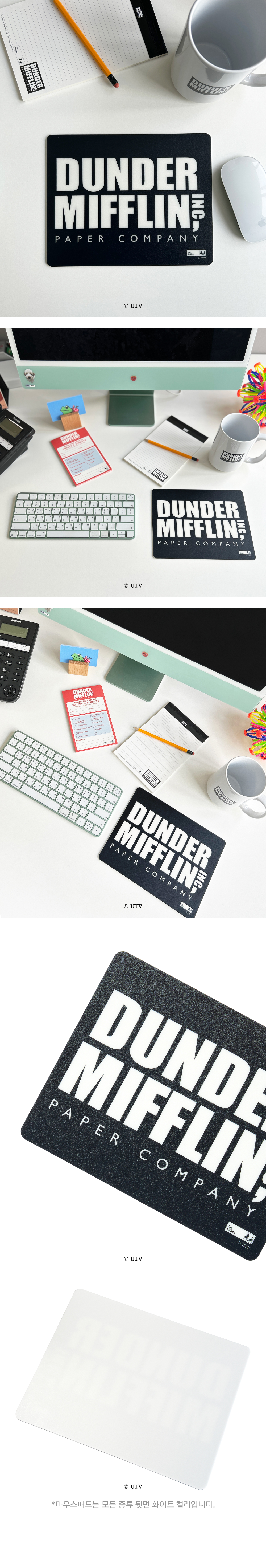 The Office의 상징적인 DUNDER MIFFLIN 로고가 담긴 마우스 패드입니다.