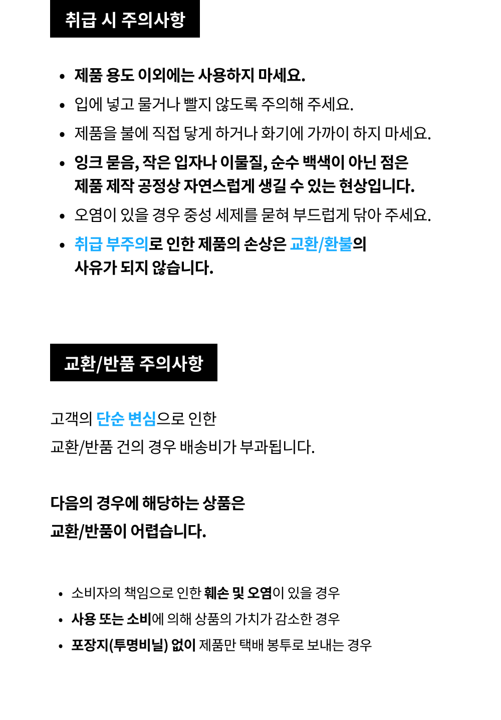 3. 판매자 과실로 인한 사유는 무료 교환 및 반품이 가능합니다.