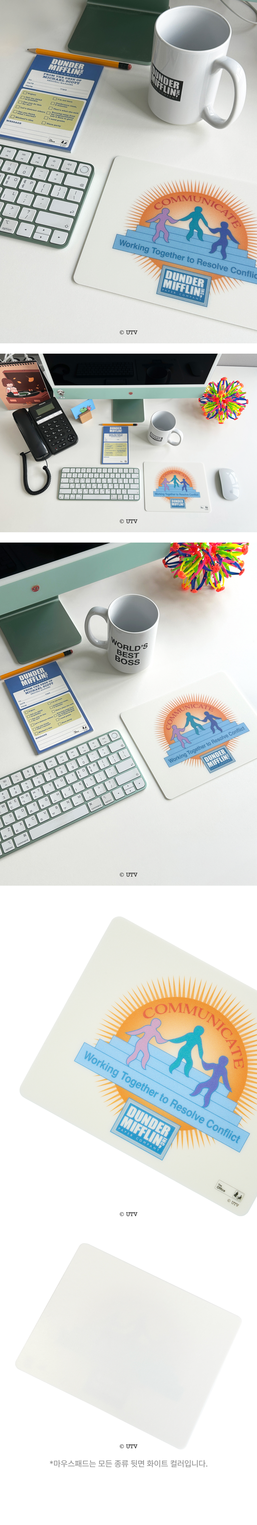 The Office의 COMMUNICATE 로고를 담은 마우스패드입니다.