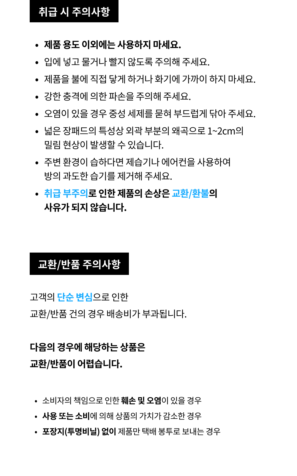 2. 제품의 하자의 경우 동일 제품으로 교환 가능