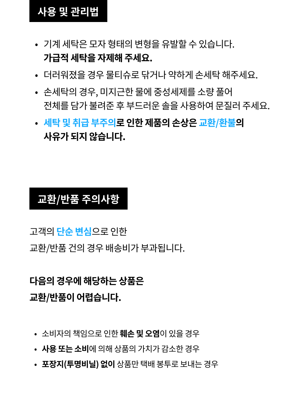 3. 판매자 과실로 인한 사유는 무료 교환 및 반품이 가능합니다.
