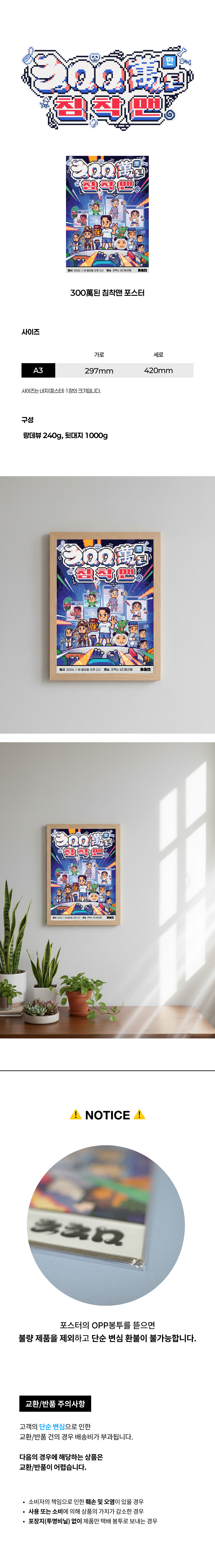 3. 판매자 과실로 인한 사유는 무료 교환 및 반품이 가능합니다.