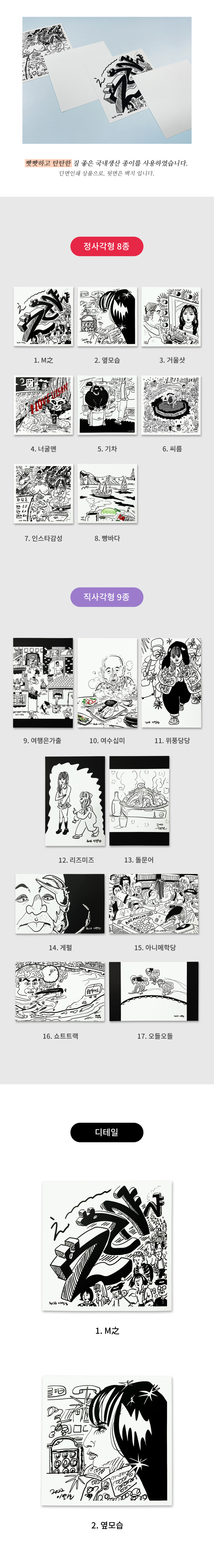정사각형(빨간색 봉투) 8종, 직사각형(보라색 봉투) 9종으로 준비되어 있습니다.