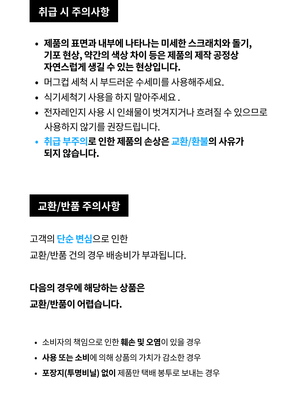 3. 판매자 과실로 인한 사유는 무료 교환 및 반품이 가능합니다.